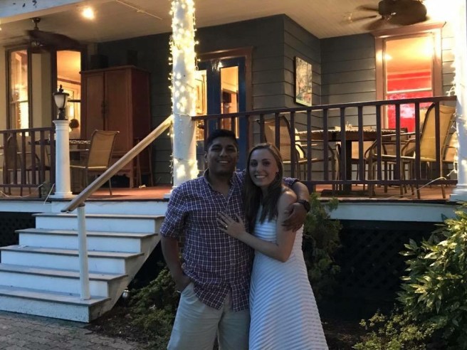 After a rainy morning, we were surprised we were able to still be seated on their patio for dinner. While the humidity was high, there was an occasional breeze off of the river, which only added to our relaxed dinner atmosphere that we were hoping for! Although, my poor groom unfortunately completely sweat through his dress pants and had to run up the street to our new apartment and change right before they served dinner!