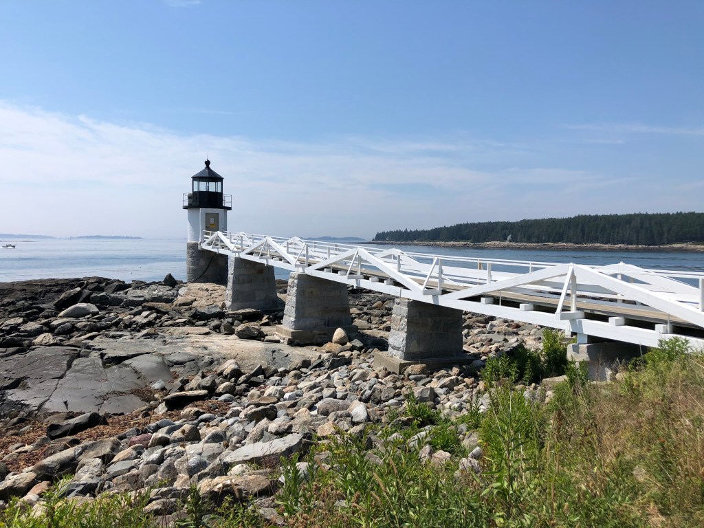 The next morning, we enjoyed breakfast at the cabin before heading out for another day of explore Mid-Coast Maine. Our first stop was at Marshall Point Lighthouse, also known in our family as the Forrest Gump Lighthouse This lighthouse happens to be the place where Tom Hanks filmed the clip of the movie while Forrest was on his running adventure from coast to coast. While there were a few groups of people around when we arrived, they all ended up leaving so we ended up having the place to ourselves, which was nice! The museum and gift shop were understandably closed, but we enjoyed the seclusion of the grounds and watching the sailboats off in the distance.