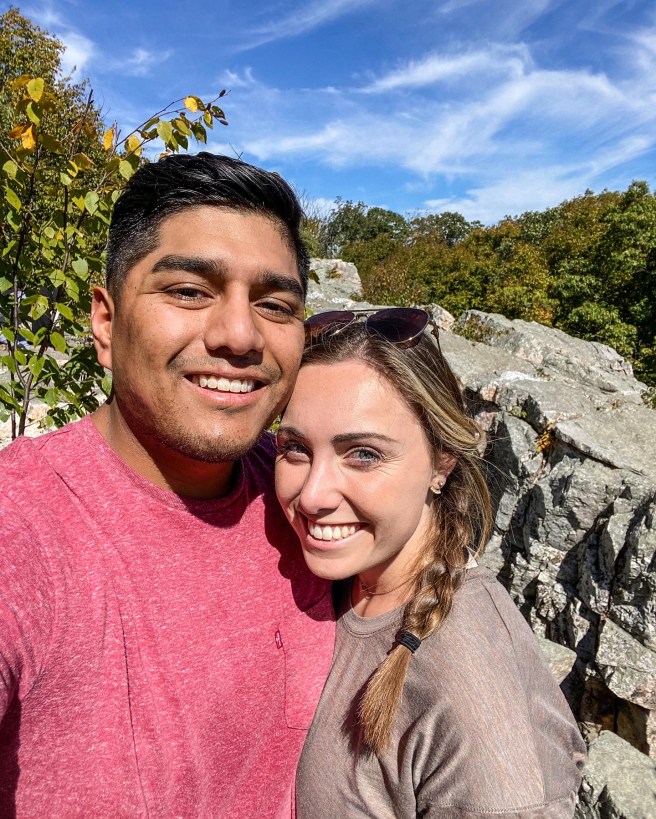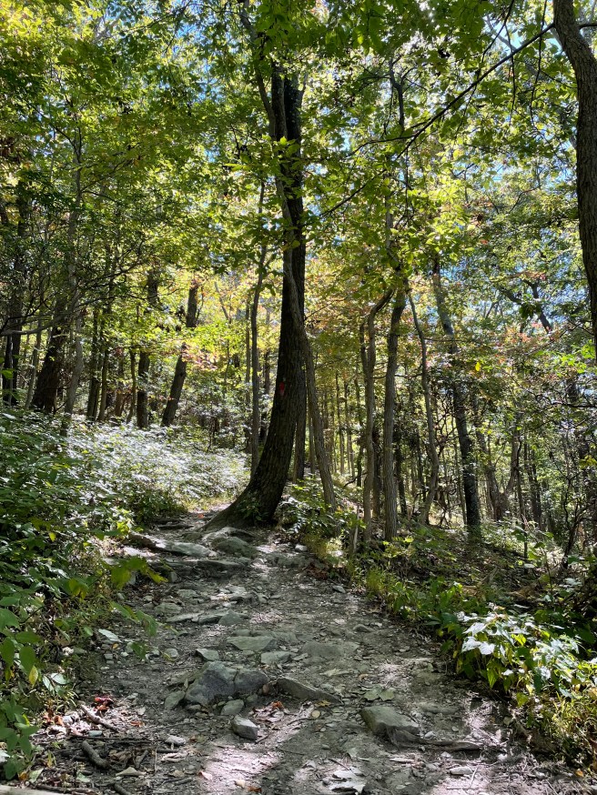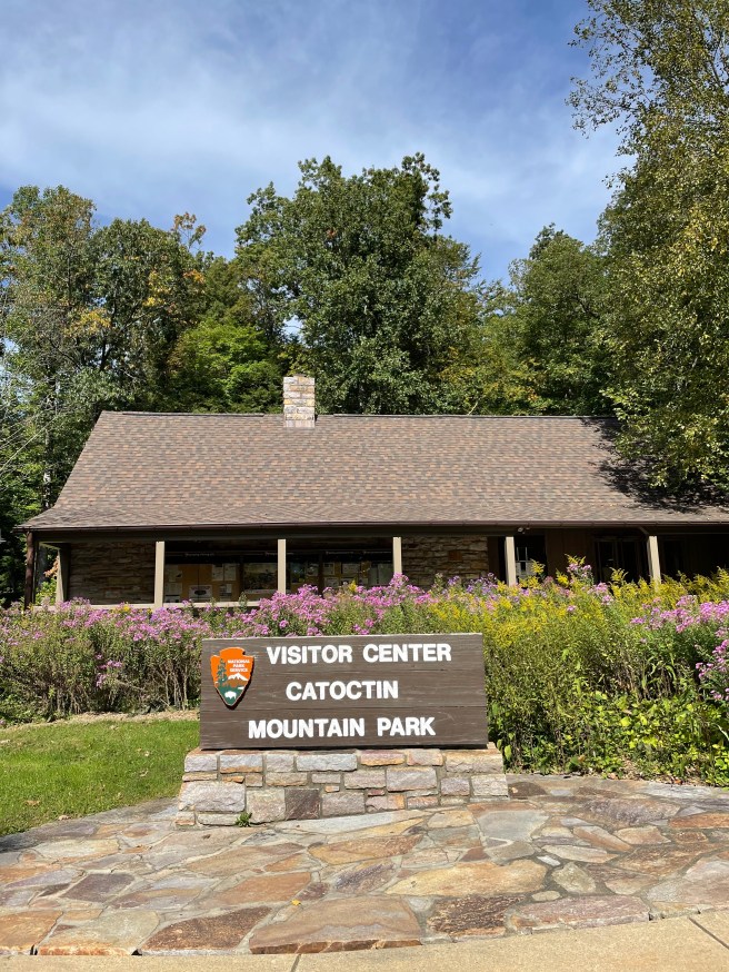 The sun eventually made its way through the trees, and as the temperature began to warm up, we got ready for our hike. There were SO many trails to choose from, including one within the Cunningham Falls State Park to the aforenamed waterfall. While that hike had great reviews, we opted for the 2.7 mile Wolf Rock Trail in Catoctin Mountain Park for the less-crowded path and top-of-the-mountain views. The hike itself was enjoyable, with parts more challenging than others, but the view was slightly disappointing – the view was blocked by the leaves at the top of the trees! We rested on the boulders for a bit before descending. Even though the view wasn’t what we hoped for, we were still able to admire the golden leaves that were changing around us.