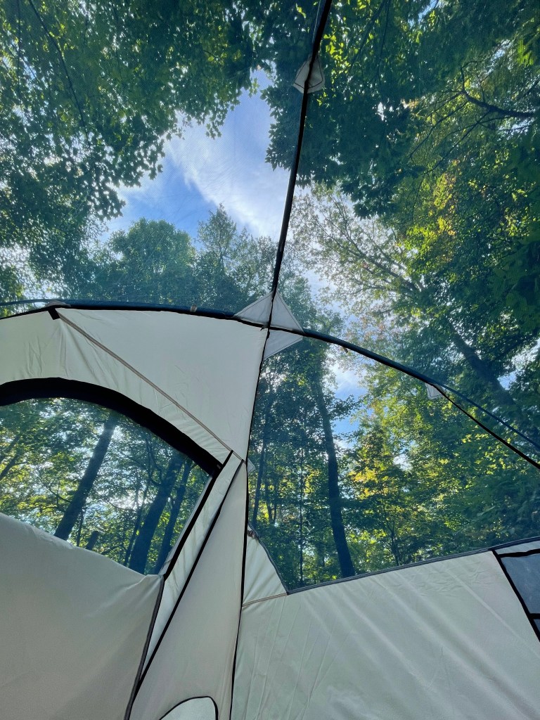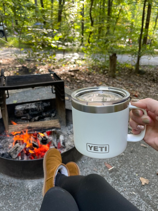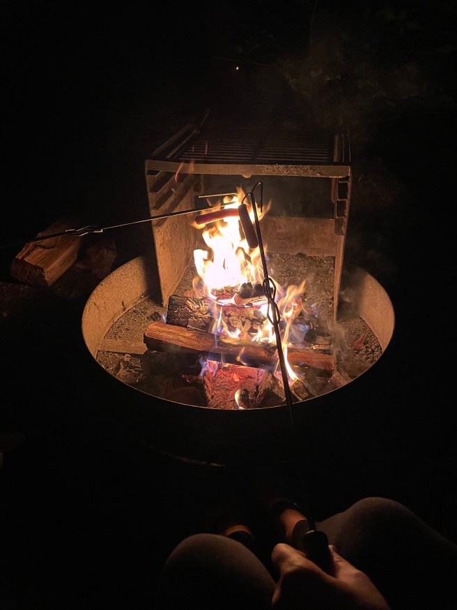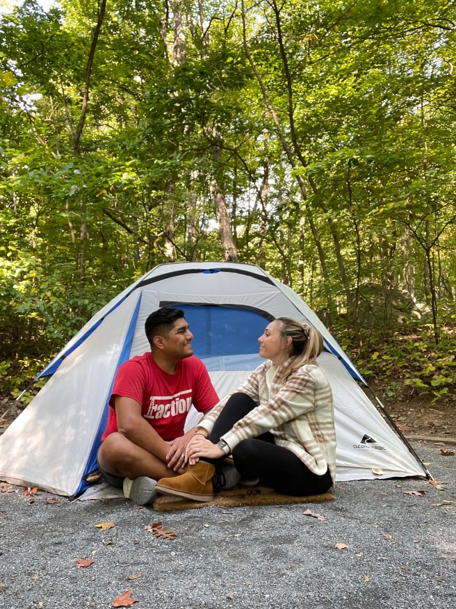 Despite our late departure, causing us to get stuck in Friday afternoon traffic, we arrived at the state park at sunset. After checking in, we arrived at our site (Site 18 in the Addison Run loop) and quickly began assembling our tent. Grateful that it was a relatively seamless process, Jody got the campfire going as I set up the rest of our site. A short time later, we were nestled in our chairs enjoying hotdogs over the fire. We listened to the crackling of the fires, as well as the murmur of the other sites around us, before calling it a night and heading into our tent. Knowing the lows at night were to be in the 40s, I packed extra blankets and sleeping bags to ensure we stayed warm enough. We ended up not needing the sleeping bags, but I was glad to have packed the extra blankets!