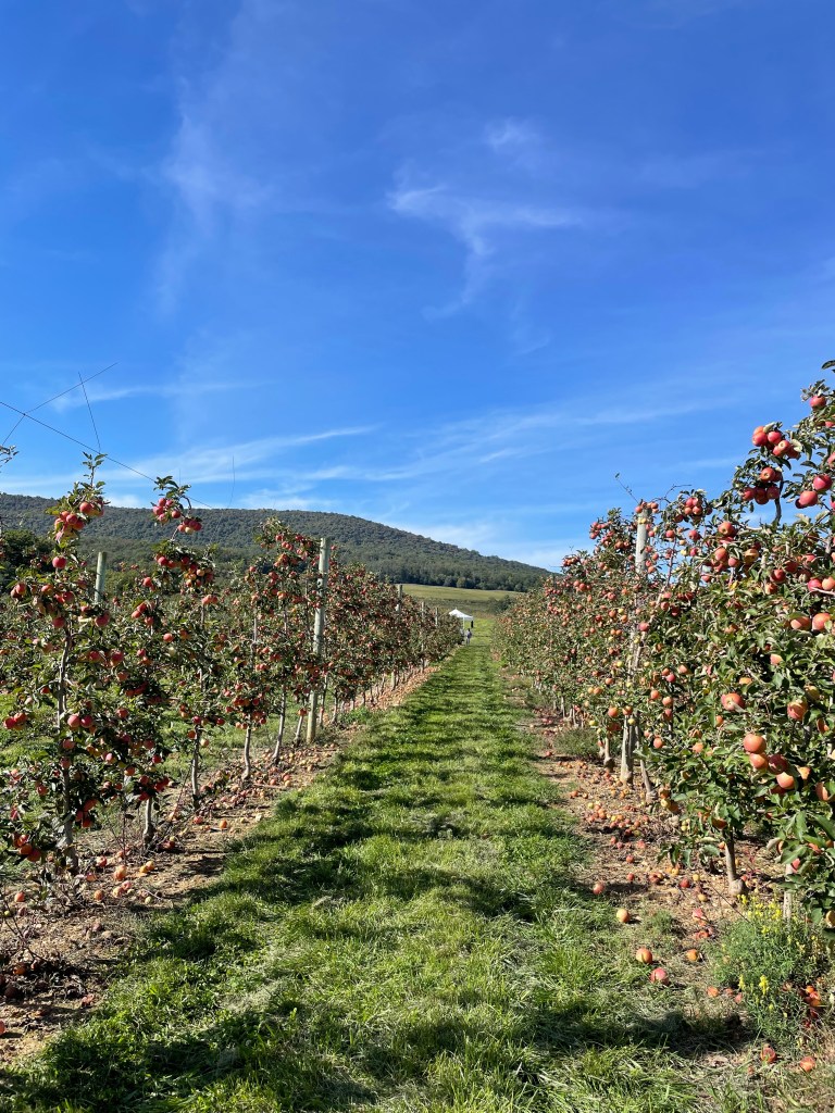 Since we would be missing our annual apple picking trip to Carter’s Mountain this year, I found a local orchard for us to visit after grabbing a bite to eat at our campsite after our hike. Catoctin Mountain Orchard sat just a few miles outside of the park, so after a quick drive down the mountain, we boarded the wagon to take a ride out into the orchard. It ended up being hotter than we anticipated off of the mountain so we didn’t spend a ton of time in the orchard – just long enough for a bag of apples and a few pictures!