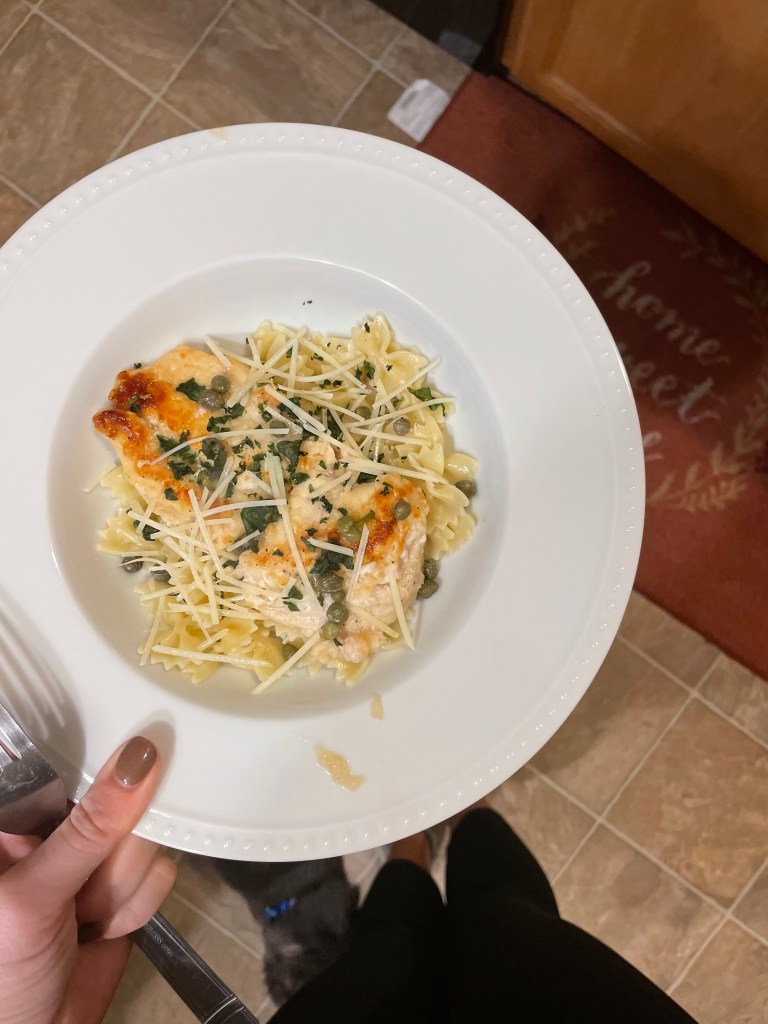 I love a delicious lemon-caper sauce pasta. The Cheesecake Factory’s chicken piccata is one of my faves! And I’ve never been a big football fan, but I’ve been learning a lot this year since my boyfriend is part of a fantasy league.