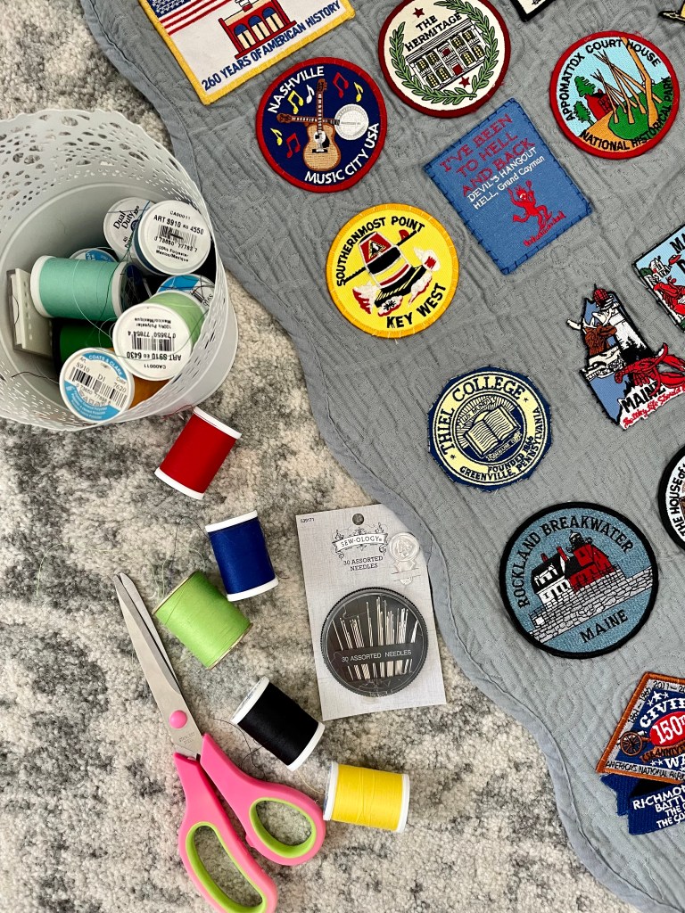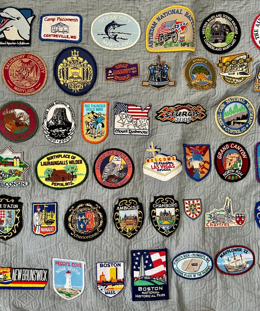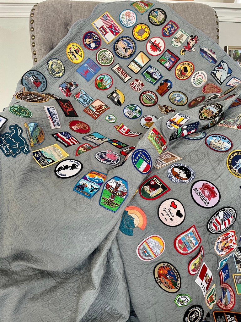 When I was six or seven, my mom came up with an idea that still allowed us to get a souvenir from each place we went, but not starts a collection of “stuff.” That’s when the idea of the patch blanket was born. Rather than buying a doll or a bag of colorful stones (I was very into those!) in each gift shop, we would pick out an embroidered patch, that my mom would later add to a blanket.