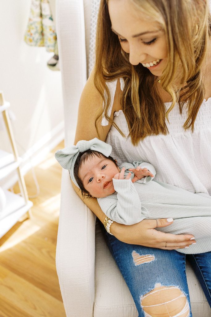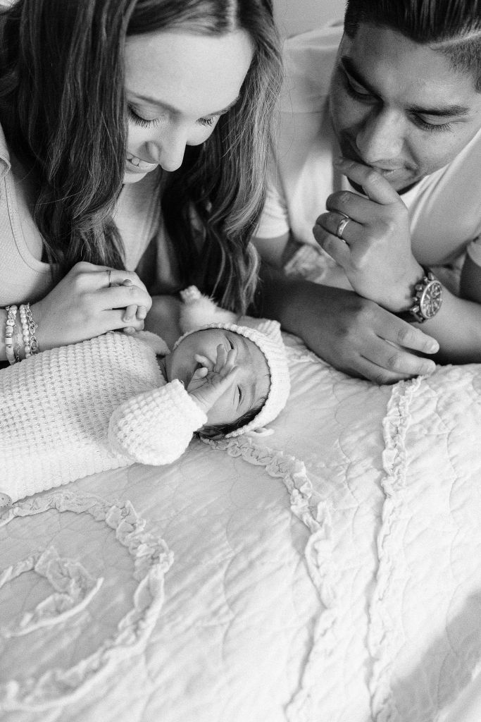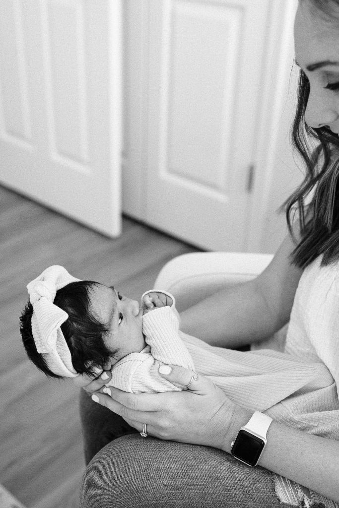 Now that I’ve shared her birth story, I feel like I can share Emerson’s newborn photos! This session sticks out in the hazy memory of the newborn days, because it was the first glimpse into motherhood that wasn’t images of sweet snuggles and soft baby kisses. It never occurred to me prior to booking Emerson’s session that she might not be content and agreeable until we were deep into this session with a fussy, mostly inconsolable baby. Our photographer, Amanda, was so sweet and promised that she was still getting some good shots, and allowed me to step away to nurse her several times to try to console her. I felt like such a failure as a mama because I couldn’t get her to settle down into the sweet, smiley baby she was for Jody and me.