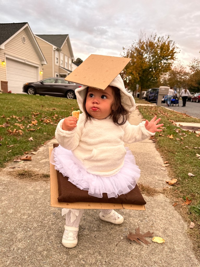 October was full of all the fall things! After a less than stellar start – Emerson experienced her first stomach virus and then shared it with Jody and my parents, somehow missing me – we spent as many days as we could doing all of our favorite fall activities. Sadly, we didn’t make it to the mountains this year, but we still had a sweet time apple-picking at a local orchard and playing at Fall Fest at a nearby farm. My friend and I had a Hocus Pocus-inspired girls’ night (highly recommend to all Sanderson Sisters fans)! Our Emmie girl was extra sweet on Halloween as a s’more. She wasn’t too sure about the costume but with a little cookie bribery, she had a great night!