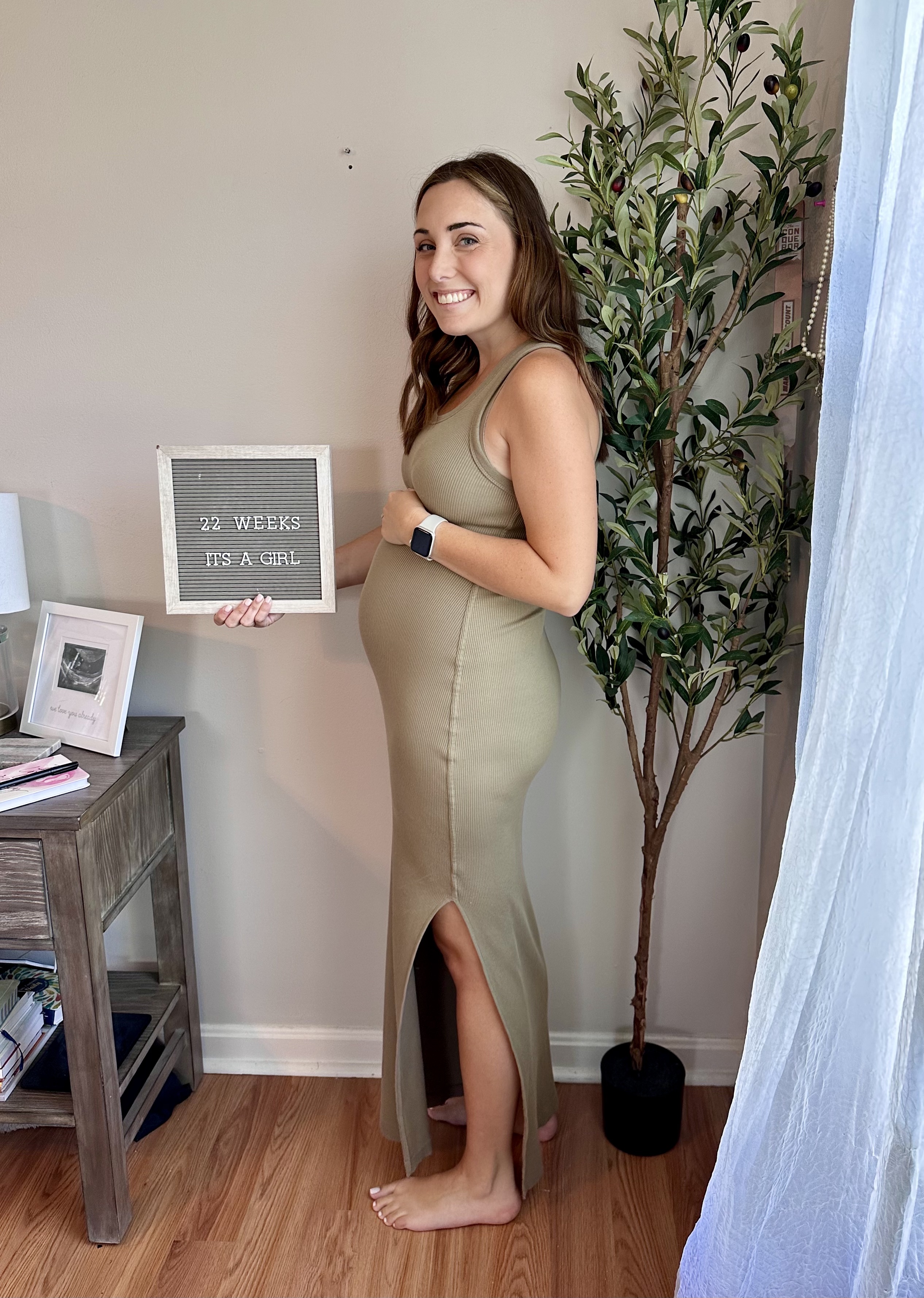Symptoms: Unfortunately, this pregnancy has physically been a little harder on me. Thankfully, the nausea that I experienced in the first trimester subsided, but I started to feel sciatica pain as early as 12 weeks. I do remember a bit of back pain during my first pregnancy but nowhere near as early. I was referred to a local chiropractor which has offered some relief and being in the pool during the summer has been great. Aside from that, the second trimester brought back some energy so I’ve been feeling pretty good. I’m not sure I ever shared this on here but surprise! Baby #2 is a girl!