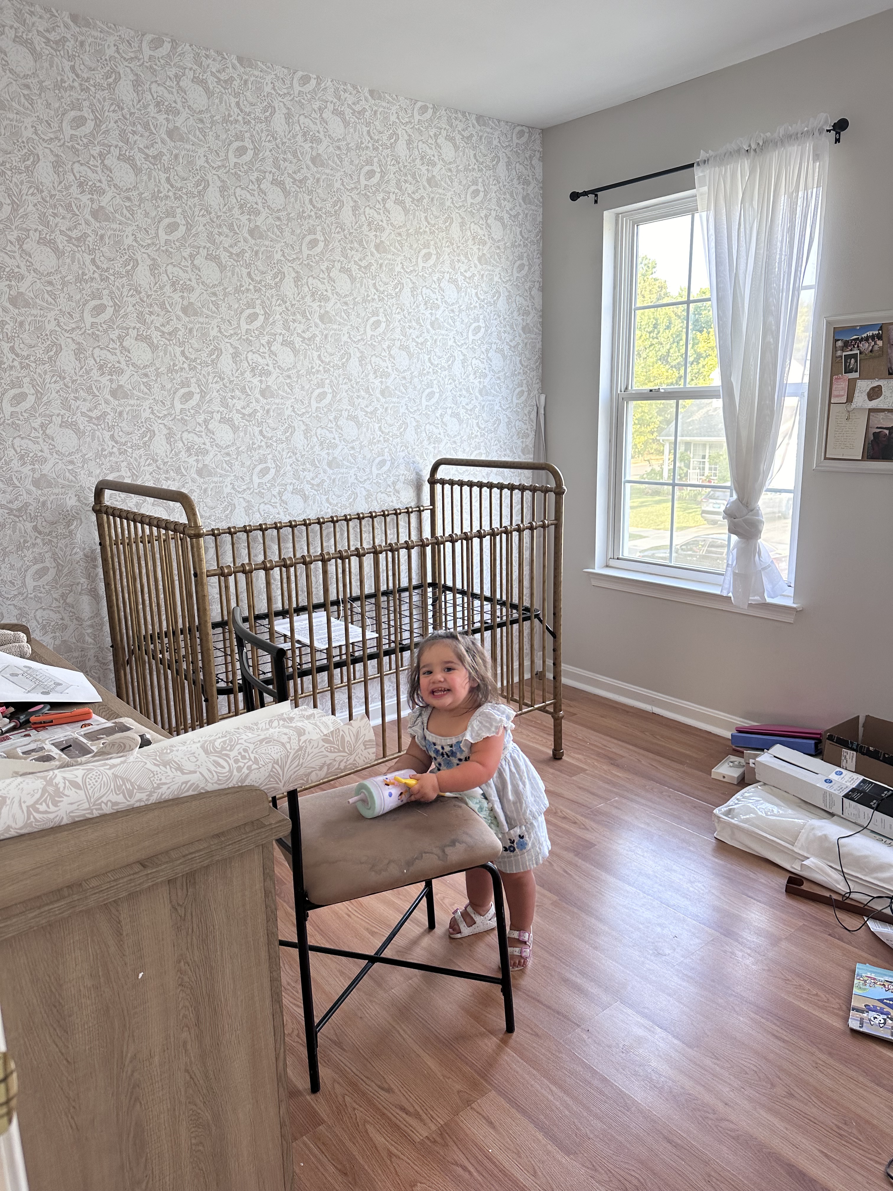 During the third trimester is also when we really got to work on the nursery. I knew mauve was the color direction I wanted to take was but struggled to find design inspiration that was different from Emerson’s room. I did find a piece of stunning wallpaper that ended up being the inspiration for a french country theme and I love the way that it turned out!